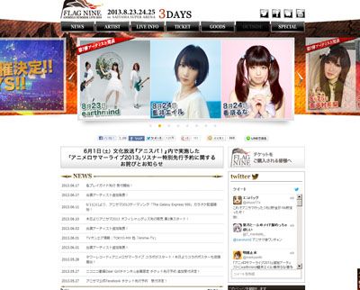 2013年8月23日(金)、24日(土)、25日(日)の3日間、さいたまスーパーアリーナで行われる「アニメロサマーライブ2013 -FLAG NINE-」の追加出演アーティストが発表された。23日にearthmind、24日に藍井エイルさん、春奈るなさん、25日に喜多村英梨さん、竹達彩奈さん、日笠陽子さん、petit miladyが出演となる。