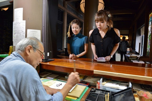鞍馬寺で御朱印帳にサインをもらう2人※放送映像には含まれない貴重なショット!