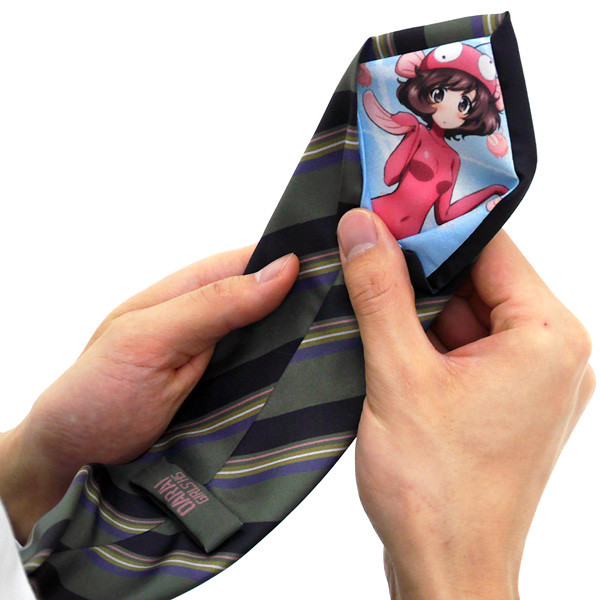 シンプルなストライプのネクタイと思いきや、内側に「西住みほ」がフルカラーでプリントされたネクタイ!