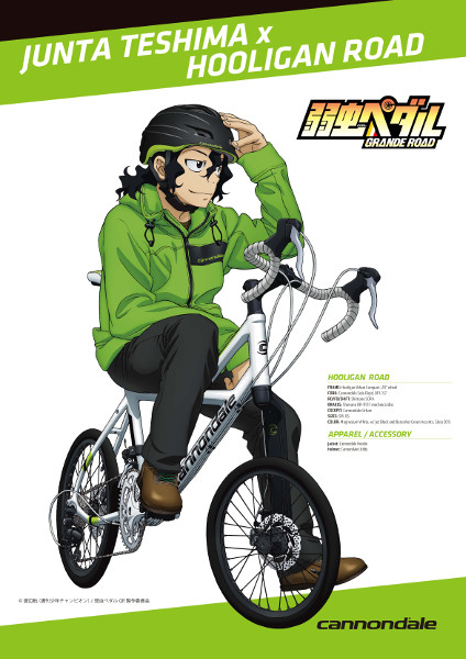 アニメ『弱虫ペダル』は、第1期シリーズ放送時からバラエティに富んだコラボレーションを展開。そしてこの度、新たにアメリカの有名自転車メーカー、キャノンデール(Cannondale)とのコラボが決定しました。原作コミック内でキャノンデール製のロードバイクを愛用する人気キャラクター、総北高校2年生の手嶋純太がキャノンデール2015年モデル「SUPERSIX EVO ULTEGRA」と「HOOLIGAN ROAD」に乗った描き下ろしイラストを発表。今後のキャノンデールの展開をより一層盛り上げます。