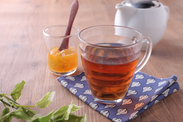 紹介文:スタートする11月1日が「紅茶の日」ということにちなんで、紅茶味のパンケーキをチェブラーシカ風に。パンケーキの生地にも茶葉を練りこみ、ラムレーズンバターを挟みました。仕上げにチェブラーシカが大好きなオレンジピールを振りかけました。