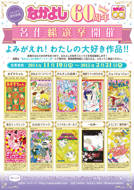 この60周年企画の第1弾として、かつて“なかよしっ子”だった大人たちの夢をかなえる『なかよし』60周年・名作総選挙を行います。