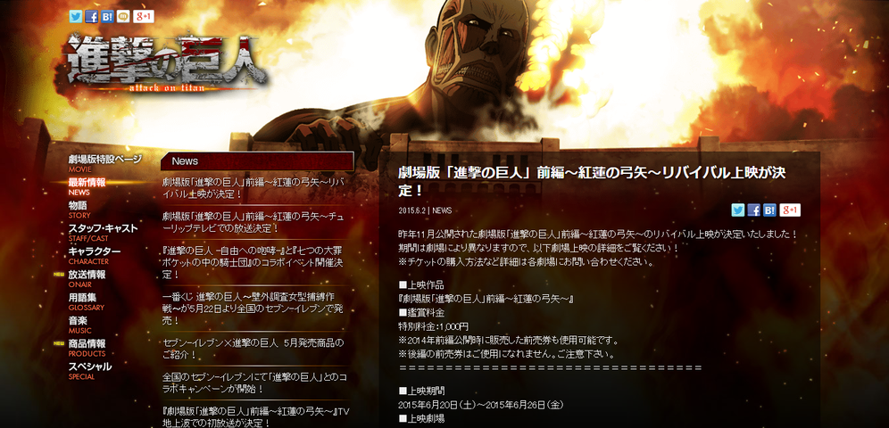 劇場版『進撃の巨人』前編~紅蓮の弓矢~リヴァイバル上映概要