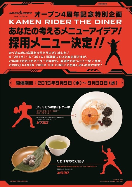 ●今年4月から6月まで募集されていたKAMEN RIDER THE DINERの『あなたの考えるメニューアイデア!』の採用作が発表&提供開始!