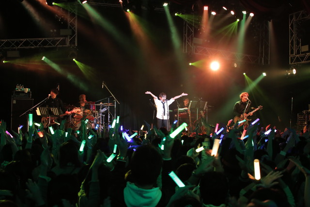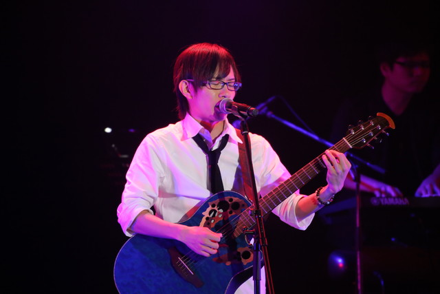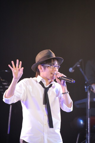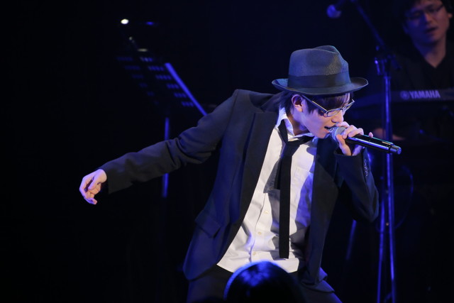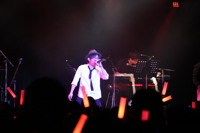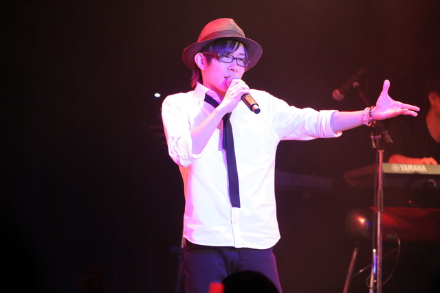 そして迎えたアンコール。最初に披露したのは、Blu-ray&DVD『デュラララ!!×2 承』第3巻のパッケージ特典で竜ヶ峰帝人として歌ったキャラクターカバーソング「なごり雪」! 1曲の中で『デュラララ!!』で演じている竜ヶ峰帝人のボイスと地声で歌いわけるという離れ業を見せ、オーディエンスから大喝采を浴びる。