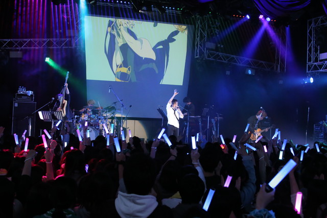 しかしそれもつかの間。「ここからは「『デュラララ!!』メドレー」です!」と叫ぶと、スクリーンにTVアニメのOP映像が流され、「裏切りの夕焼け」、「コンプリケイション」、「HEADHUNT」「NEVER SAY NEVER」とこれまでの主題歌を次々と歌い上げていく。