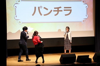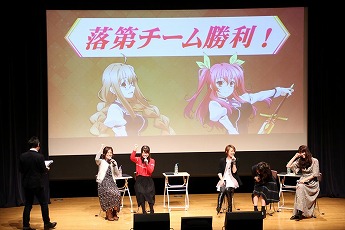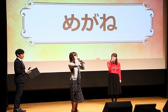 そんなふたつのアニメには「落第」や「最弱」といった似たようなフレーズがついているということで、続くゲームコーナーで勝負をすることに! 落第チームの石上さん・金元さん、最弱チームの田村さん・Lynnさん・藤井さんに分かれて「ジェスチャー当て」ゲームや、でたらめの秘密を言っている人を当てる「うそつき当て」ゲームで勝敗を競うことになるのだが、ここで輝いたのがLynnさんと石上さん。共に嘘の秘密を語っていたのだが、その内容が秀逸!