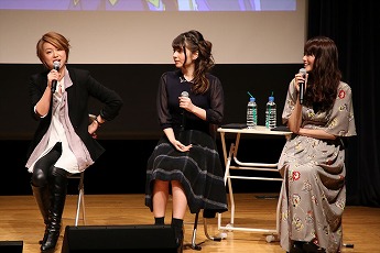 トークはまず、最終回を迎える『落第騎士の英雄譚』から。ここでは石上さんと金元さんが思い出のシーンを振り返り、話に花を咲かせたが、やがて9話の『山小屋』でのシーンの話で持ちきりに!? かなりの尺を使っていたことにビックリしたという感想や、「はぁはぁ……」という吐息がアフレコ現場に響き渡っていた話などを振り返っては会場の笑いを誘っていたぞ。個人的にもこのシーンはかなり秀逸なデキだったと思ったので、どんなシーンなのか気になる方はぜひBDやDVDで確認して欲しい!