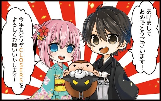 『CLOSERS』公式サイトにて好評連載中のWEBコミック「くろーざーず」は、魅力ある登場人物やゲーム本編では語られない裏話などを5コマ漫画にて更新中。第7話は、新年の挨拶からスタート。サービスが開始した昨年に起きた出来事を振り返り、今後の展開を紹介する内容となっている。