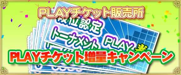 キャンペーン内容:期間中は下記の通り段位認定/トーナメントPLAY券の販売価格は据置きのまま枚数を増量致します。