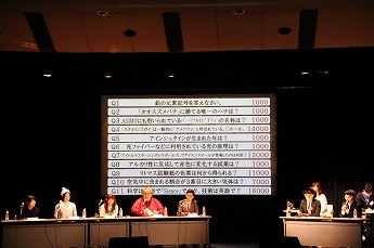 そして今回のゲームである「OUTFOX QUESTION」がスタート。まずは「QUESTIONパート」。事前に出場者が考えたクイズ、設定したNATCLE(=ポイント)が表示されます。今回のテーマは「サイエンス」。