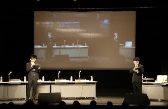 さてレポートへ! まずは司会の伊福部崇さん、向清太朗(天津)さんが登場し、挨拶とルール説明を行います。