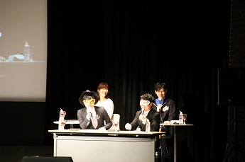 ■左からNATURE GAME時代に2連覇を達成している“女帝”こと青木瑠璃子さん、“謎解きアイドル”グループ・ラストクエスチョンの安藤ひかるさん、アニメ・声優関連のラジオを多数手がける放送作家の小林洋平(ちゃんこ)さん、学習院大学卒の声優・一木千洋さん、東京大学において現役入学・現役卒業を果たした芸人・藤本淳史(田畑藤本)さん