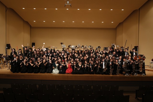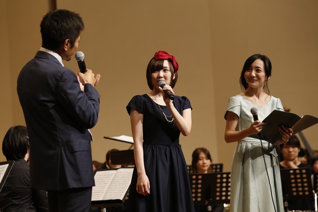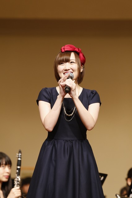 演奏は、アニメ本編で使われる演奏を担当した“洗足学園音楽大学 フレッシュマン・ウインド・アンサンブル2014”の62名と、指揮者は音楽監修を務めた大和田雅洋。司会進行は、アニメフリークのキャスター松澤千晶。さらに『響け!ユーフォニアム』シリーズの音楽プロデューサーの斎藤 滋が解説を行う。トークゲストには「優子ことデカリボン先輩です!」と、頭に赤いリボンを付けて登場した、トランペットの2年生・吉川優子役の山岡ゆり。歌のゲストには、1期2期と続けてOPテーマを担当するTRUEが登場して会場を沸かせた。