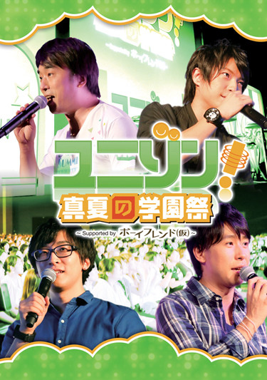 4人の人気男性声優が曜日別パーソナリティを務める文化放送深夜の生ワイド番組『ユニゾン!』(毎週月~木曜25時から26時)。このたび、番組イベントの模様を収めた10月29日発売のDVD「ユニゾン!真夏の学園祭 ~Supported by ボーイフレンド(仮)~」のジャケットが初公開された。