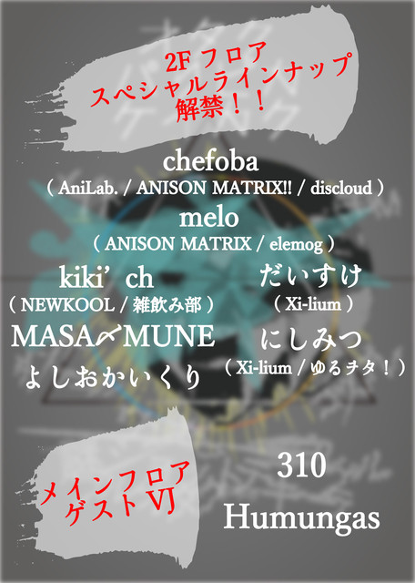 2nd Floor DJ:chefoba・melo・kiki' ch・MASA〆MUNE・よしおかいくり・だいすけ・にしみつ
