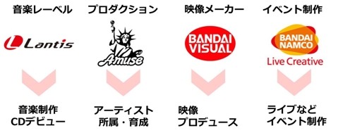 ●㈱ランティス、㈱アミューズ、バンダイビジュアル㈱、㈱バンダイナムコライブクリエイティブの4社合同だ!