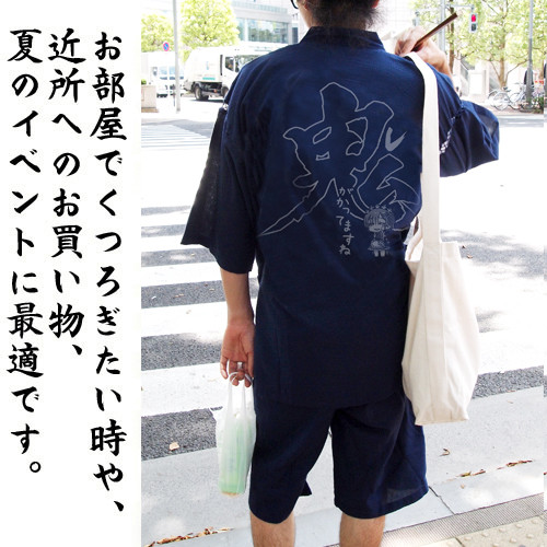 「鬼がかってますね」ひとつ困難を乗り越えた朝、レムとスバルが笑いあうあの名シーンをデザインした甚平が登場。デフォルメでさらに可愛いさ溢れるレムと、セリフをデザイン。いつでもあの感動に包まれて過ごせるアイテムだ。レムりんが背中にいると思えば、鬼がかった活躍も出来ちゃうかも!?