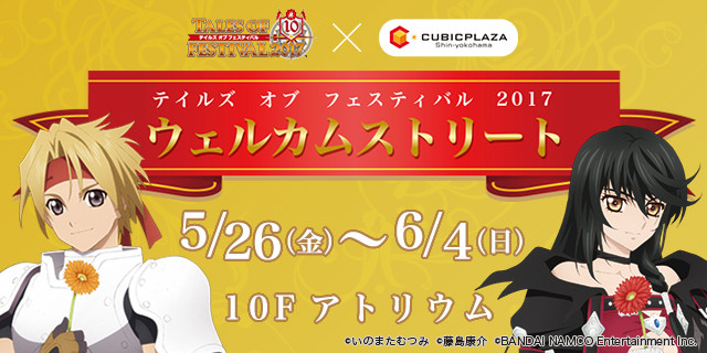 内容:『テイルズ オブ』シリーズ登場キャラクターの装飾が皆様をお迎えし「テイルズ オブ フェスティバル 2017」をともに盛り上げます。開催時間や開催場所などの詳細につきましてはキュービックプラザ新横浜公式ページへ!
