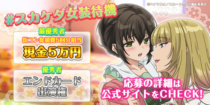 女装、または男装の姿で指定のポーズを再現した写真にハッシュタグ「#スカケダ女装待機」を付けてツイートすると参加完了。「最優秀者」にはストーリーにちなんで「街コン参加費5回分相当の現金5万円」&「エンドカード出演権」を、そして「優秀者」には「エンドカード出演権」をプレゼントする。