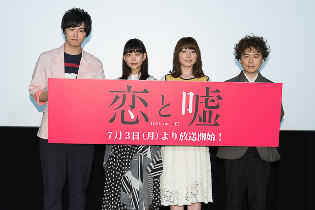 講談社週刊「少年マガジン」編集部/DeNA「マンガボックス」にて連載中の大ヒットコミック『恋と噓』(原作:ムサヲ)。少年少女たちのひたむきで純粋な想いが交錯する禁断の恋物語が7月3日(月)より、TOKYO MXほかにて放送開始。TVアニメの放送に向けて、放送直前の記念舞台挨拶を実施した。