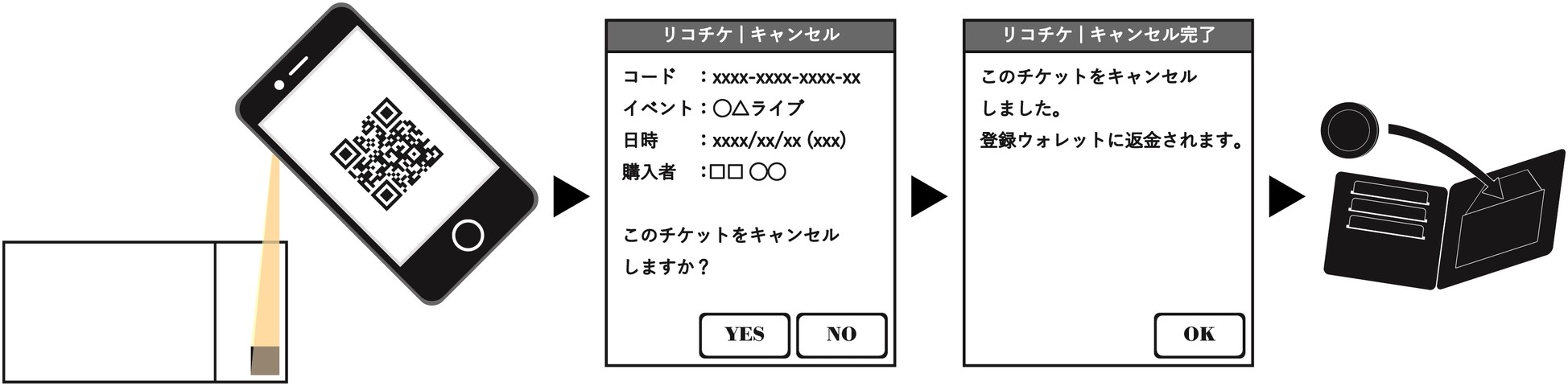 「リコチケ」 は届いたチケットそのものに購入者だけが返金額を受け取ることができる仕組みのセルフキャンセル機能を設けた新しい発想のチケット。