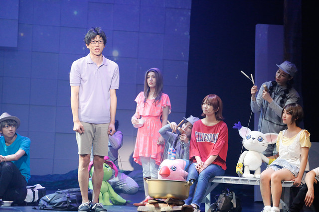舞台では『デジモンアドベンチャー tri.』のサイドストーリーとして8月1日に高校生になった主人公・八神太一、石田ヤマトら“選ばれし子どもたち”とパートナーデジモンたちがキャンプ場で過ごす1日の出来事が描かれます。これまで語られることの少なかった太一たちの将来の夢や、思春期ならではの悩みや葛藤を抱く姿を松本岳、橋本祥平、森田涼花ら若手俳優陣が熱演。公演に先立ち、8月4日にゲネプロ公演、囲み取材が行われました。