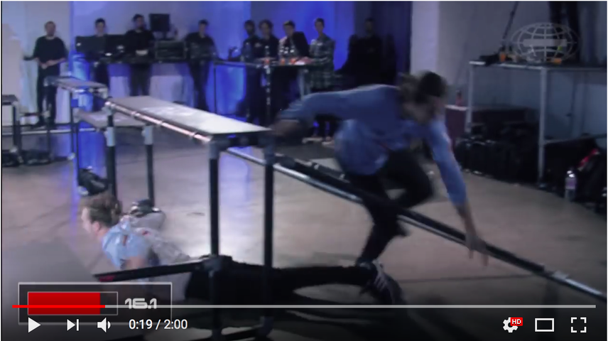 この競技は決められたスペースの中に、様々な障害物が設けられ、その中を追う者・追われる者が所狭しと縦横無尽に動き回る!制限時間20秒で戦うその様は一流アクション映画さながら!