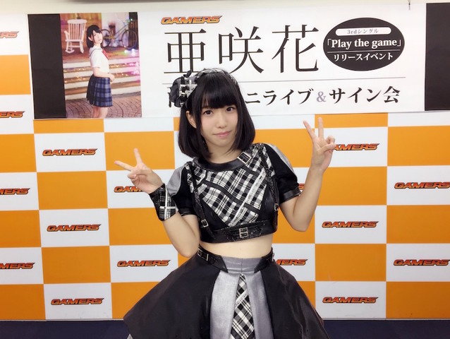 11月8日(水)にリリースされる亜咲花3rdシングル「Play the game」の発売記念イベントが、10月15日、東京・AKIHABARAゲーマーズ本店イベントスペースにて開催された。