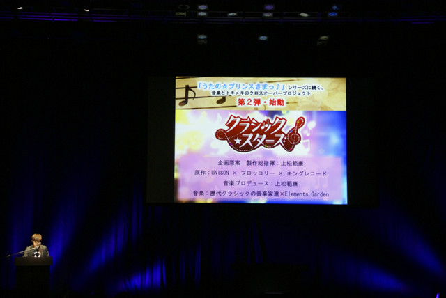 そして、この怒涛の作品紹介ラストに発表されたのは「クラシック★スターズ」。企画原案・製作総指揮、さらに音楽プロデュースを上松範康が務め、原作はアリア・エンターテインメントのクロスメディア部が立ち上げた新ブランドのUNISON、ブロッコリー、キングレコードの三社、歴代クラシックの音楽家たちとElements Gardenの音楽が合わさる新プロジェクトとのこと。こちらも続報が気になる作品だ。