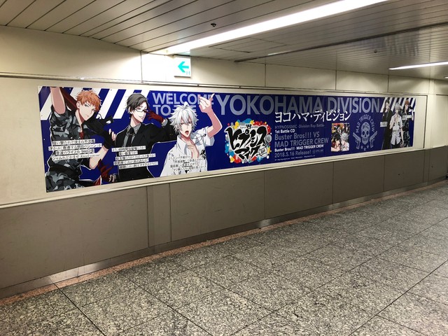 5月16日(水)に発売となる1st Battle CD「Buster Bros!!! VS MAD TRIGGER CREW」の発売を記念しJR池袋駅北通路には、イケブクロ・ディビジョン Buster Bros!!!のイラスト&リリック入りのDIVISIONポスター。また、横浜駅B1F東西自由通路には、ヨコハマ・ディビジョン MAD TRIGGER CREWのDIVISIONポスターが登場しバトルの開幕を盛り上げている。