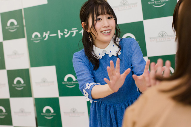 最後に「これからもっともっと、鈴木みのりをよろしくお願いします」と挨拶をした彼女。ミニライブ後のお渡し会は、特典ポスターを一人ずつ手渡しするというもので、ランダムに5名分はサイン入りというスペシャルも。小学生くらいの小さい子には「何歳?」と声をかけ、受験生には「頑張って!応援してる」など、一人ひとり言葉をかけながらポスターを手渡す。なかには「FEELING AROUND」のジャケ写と同じ、ラーメンの具のアクセサリーを頭に付けた女の子もいて、これには鈴木もうれしそうな表情でピョンピョンと飛び跳ねていた。