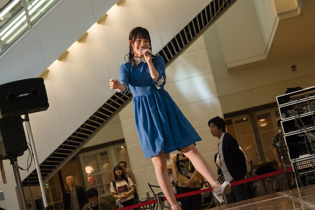 ゲートシティ大崎B1アトリウムは、会場をぐるりと取り囲むように1階のテラスからも見おろすことができる会場。鈴木は上階のテラスのファンにも、「大丈夫ですか? 見えますか?」と手を振ったり、「たまに水分補給しながら楽しんでくださいね」と、ファンを気遣う様子も。ファンを魅了してやまない彼女の温かい人柄と、アニメ「マクロスΔ」のユニット『ワルキューレ』の"フレイア"の時とは違った魅力を見せる透明感あふれるスケールの大きな歌声で、もっと大きな会場で聴いてみたいと実感させるイベントになった。