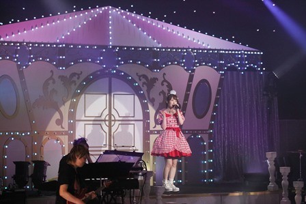 パシフィコ横浜と同じホール仕様の遊園地をイメージさせるようなセットの扉から登場した内田は、「群馬県民会館のみなさん、今日はSo Happyな1日にしましょう」という掛け声を合図にツアーファイナルにして初の凱旋公演をスタートさせた。オープニングの「So Happy」では歌詞とリンクするスキップなどを織り交ぜたキュートな振りと共に、足だけでなく心も軽くなる軽快なポップ感が演出される中、曲後半では今回のツアー恒例の「So Happy じゃんけん」を披露。「勝った人は超ハッピーだよ」というのが定番だったのが、この日は「負けた人は超超超ハッピーだよ」というおまけも。実は、後半のMCで明らかにされたのだが、負けた人が勝つじゃんけんのルールは、内田の小学校時代の先生が編み出したもので、郷土愛溢れる仕掛けはその後も随所に用意されていた。