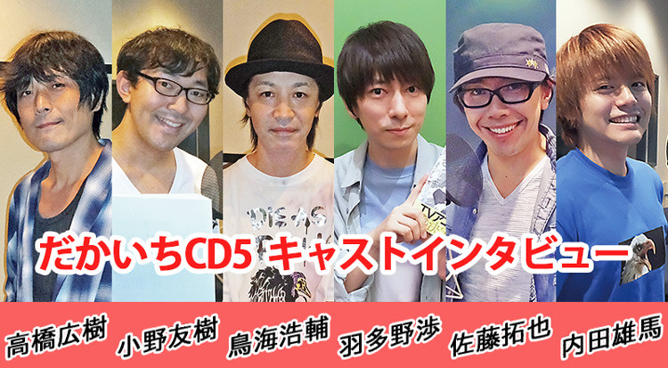 ドラマCD『抱かれたい男1位に脅されています。5』のキャスト・高橋広樹さん(高人役)、小野友樹さん(東谷役)、鳥海浩輔さん(卯坂役)、羽多野渉さん(在須役)、佐藤拓也さん(綾木役)、内田雄馬さん(成宮役)のインタビューを写真と共に公開。