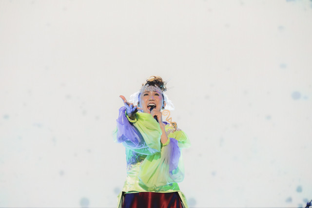 星空と宇宙の映像をバックに、伸びやかな歌声で観客を沸かせたのは水瀬いのりの「Starry Wish」。続く「Million Futures」「アイマイモコ」を笑顔で歌い上げた。MCでは「いのりんと呼んでくれて凄く嬉しい!」と話し、自身も中国語で自己紹介に挑戦する微笑ましい姿もみられた。「Ready Steady Go!」では、フロートでアリーナを外周しながら元気いっぱいにタオルを振って歌う姿に、見ているこちらにも自然と笑顔が広がった。