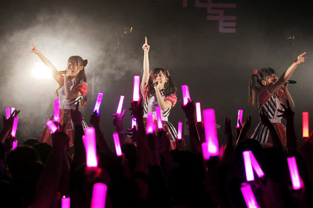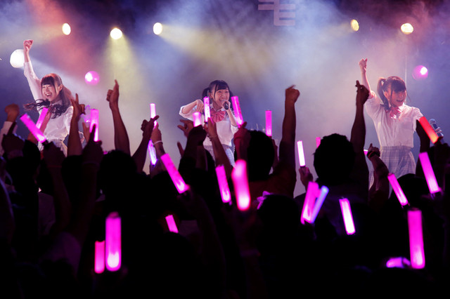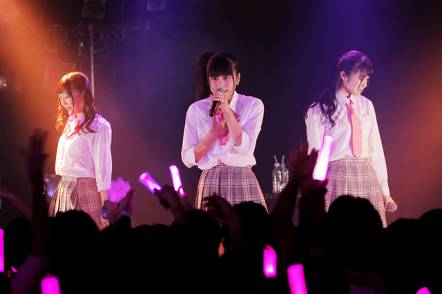 2017年7月にデビューしたRGRが、全10曲以上を披露するライブイベントを開催するのはこれが初めて。1st LIVE TOURの初日公演を見届けようと会場には多くのファンがつめかけました。学校の授業の始まりを思わせるようなチャイムの音が会場に響くと、OPムービーと共に制服を模した衣装の3人が登場。冒頭よりデビュー曲の「カケル×カケル」を披露し、会場は大きく沸きました。