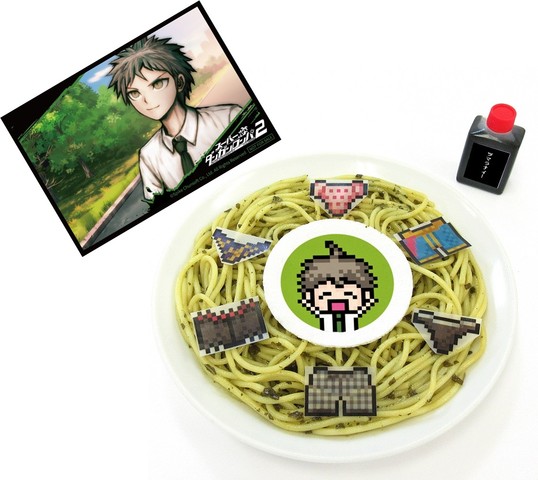 メニュー説明:『だんがんアイランド』での日向をイメージしたバジルパスタ。このパスタを食べれば仲間との絆も深まり、らーぶらーぶになること間違いなし⁉お好みで絶望の追いソースをかけて召し上がれ。