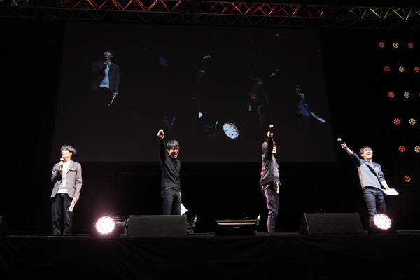 登壇者:村瀬 歩(日向翔陽役)、石川界人(影山飛雄役)、内山昂輝(月島 蛍役)、梶 裕貴(孤爪研磨役)