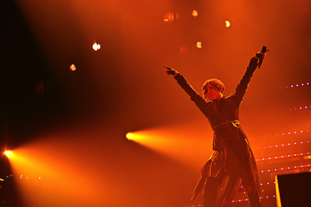 本ツアーで久々の歌唱となった1stシングル収録の「ユメノツヅキ」から、客席を煽りながらアッパーチューン「INVERTED」へ。見事なコール&レスポンスで会場のテンションはみるみる上昇していく。次への曲間で上着を投げるシルエットが映ると、タイトなブラックレザーに透けレースを組み合わせた艶やかな衣装に早変わりした蒼井が登場。“参ります!”と声をあげ和テイストのロックナンバー「零」を披露した。観客と歌詞をデュエットしながら、ここからはダンサーも登場し「UNLIMITED」で盛り上げると、「S」では刺激的なフレーズとキレのあるパフォーマンスで一気に畳み掛け、会場に更なる一体感をもたらした。