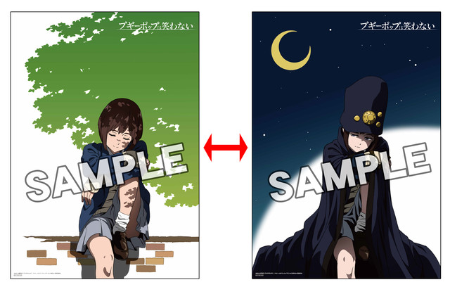 TVアニメ『ブギーポップは笑わない』Blu-ray&DVD第1巻を下記対象店舗にてご予約頂くと、先着でアニメ描き下ろしイラストを使用したA3チェンジングポスターを発売日にプレゼント。ポスターを見る角度を変えると絵柄が宮下藤花からブギーポップにチェンジ!?