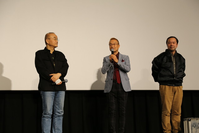 冴羽 獠の登場シーンでは「獠ちゃ~~ん!!かっこいい~~!」「もっこりー‼」というラブコールから始まり、途切れることなく『シティーハンター』愛に溢れた声援や歓声が飛び交った。クライマックスでTM NETWORKの「Get Wild」が流れると会場のボルテージは最高潮に。観客全員で大合唱、会場がひとつになった。手作りのうちわや100tハンマーを持参する熱い観客も見受けられ、思う存分思いの丈を伝える「シティーハンター」一色の応援上映となった。そして上映後、サイリウムの海の中大きな拍手と歓声にむかえられ、神谷明、こだま兼嗣(総監督)、諏訪道彦プロデューサー(読売テレビ)が登壇した。