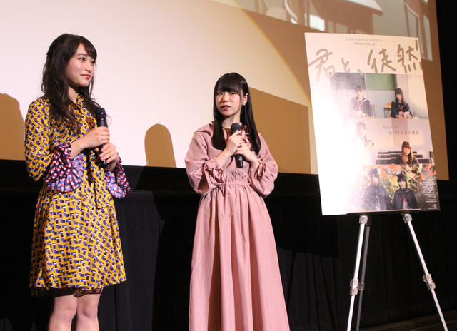 本作で演じたキャラクターの印象を訊かれた都塚は「静かでいつも隅っこにいるような女の子の役だったのですが、セリフがほとんどなかったので、表情の演技に気をつけました」と話した。続いて福田は「等身大の女子高生のままで演じさせていただいて、キャラクターも私なんじゃないかと思うくらいやりやすかったです」とコメント。続いて、撮影中のエピソードについて都塚が「外で電車を待っているシーンの撮影の時に、愛依ちゃんがホッカイロを自分の分までくれてすごく優しかったです」と話すと、福田が「(都塚を)守りたくなっちゃうので、もう何個でもホッカイロあげちゃうって気持ちでした」と語る微笑ましい一幕も。