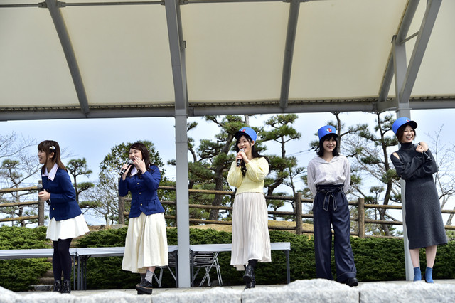渕上さんは昨年に引き続き7年連続での登壇。植田さんは2016年の出演以来、3年ぶりとなる登壇だった。昨年の海楽フェスタでは電話での出演となったが、渕上さんと話す直前に電話が切れてしまった思い出を話し、会場は笑いに包まれた。また、海楽フェスタへの参加が初となる原さん・津田さん・安済さんは、会場を埋め尽くす観客の数に、想像以上だとコメント。さらにBC自由学園のキャストが揃うのは今回のイベントが初ということで、喜びを共有した。