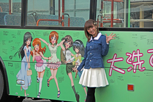 茨城交通で運行中の路線バスに『ガールズ&パンツァー』大洗女子学園のキャラクターのイラストと、ファンからの手書きメッセージをラッピングした「ガルパンバス5号車」が登場、「大洗春祭り 海楽フェスタ2019」でお披露目された。渕上舞が車体および車内の計2か所に直筆でサインとコメント。ガルパンバス5号車は3月17日(日)から大洗・那珂湊・水戸を結ぶ路線で運行中だ。