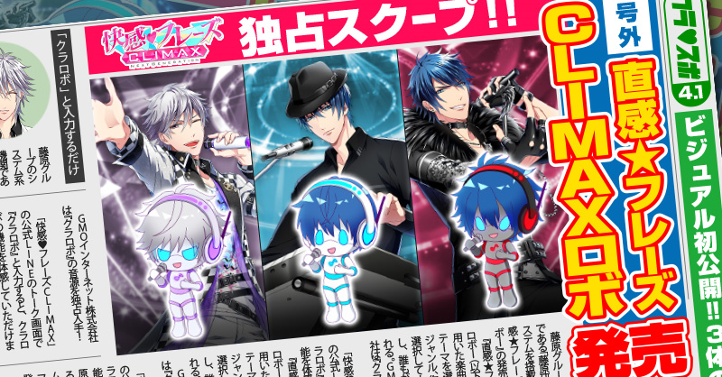 GMOインターネット株式会社は、現在開発中の新作ゲームアプリ『快感♥フレーズ CLIMAX』にて、2019年4月1日(月)よりダミーボイス搭載AI歌唱ロボ、「直感★フレーズCLIMAXロボ(以下、クラロボ)」のプロトタイプ版を『快感フレーズCLIMAX』の公式LINE上で公開した。