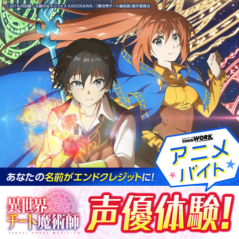 『異世界チート魔術師』の声優としてアフレコ収録を体験するお仕事が激レアバイトに登場!2019年5月27日(月)7:00まで募集中!タウンワークサイト内の応募フォームからのみ受付。