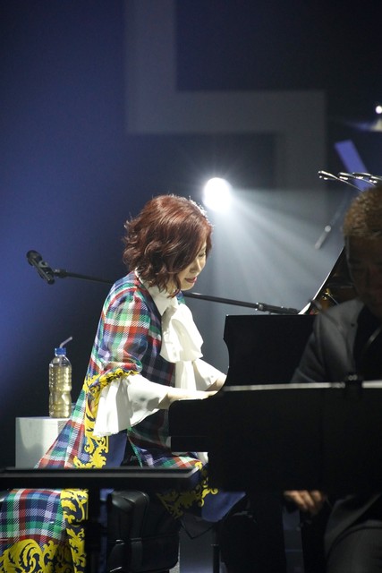 6月15日、千葉・舞浜アンフィシアターで作曲家・梶浦由記の1年ぶりとなるライブツアー『Yuki Kajiura LIVE TOUR vol.#15』が開幕した。“バックバンドではなく、演奏者一人ひとりが主役”という梶浦の強いこだわりから名付けられた(“バックバンド”ならぬ)FRONT BAND MEMBERSは、是永巧一(ギター)、佐藤強一(ドラム)、高橋“Jr.”知治(ベース)、今野 均(ヴァイオリン)、西方正輝(チェロ)、赤木りえ(フルート)、中島オバヲ(パーカッション)、大平佳男(マニピュレーター)といったおなじみのメンバーに加え、アコーディオンの佐藤芳明、イーリアンパイプスの中原直生も久しぶりに参加。日替わりとなるボーカルにはRemi。普段やっている音楽はバラバラな超個性派集団だが、ひとたび音を合わせれば特別なケミストリーを生み出す腕利きの一流ミュージシャンたちだ。