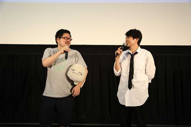 この度、宇木敦哉監督の故郷、作品の舞台にもなっている北海道・札幌にて、舞台挨拶が実施されました。テツ役の下野紘と、宇木敦哉監督が登壇。前作『センコロール』を札幌の映画館で観たファンが見守るなか、アフレコ時のエピソードや下野をテツ役に選んだ時の印象についてのトークで盛り上がりました。作品の見どころを聞かれると、監督に加え、脚本・作画すべてを手掛ける宇木は、作品に登場する札幌西部にある「『手稲山』のラインが上手く描けた」と話すと、地元トークに会場が沸きました。