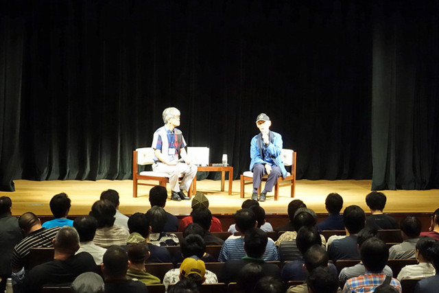 いち早く劇場版『ガンダム Gのレコンギスタ』を見ようと、応募総数およそ1,900人の中から抽選で選ばれた約180人のファンからの熱い拍手を受け、富野由悠季総監督と福岡市美術館の山口洋三氏がステージに登壇し、本編上映の興奮冷めやらぬ熱気の中、トークショーが始まった。